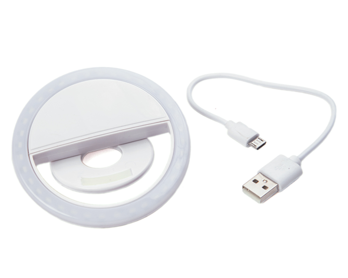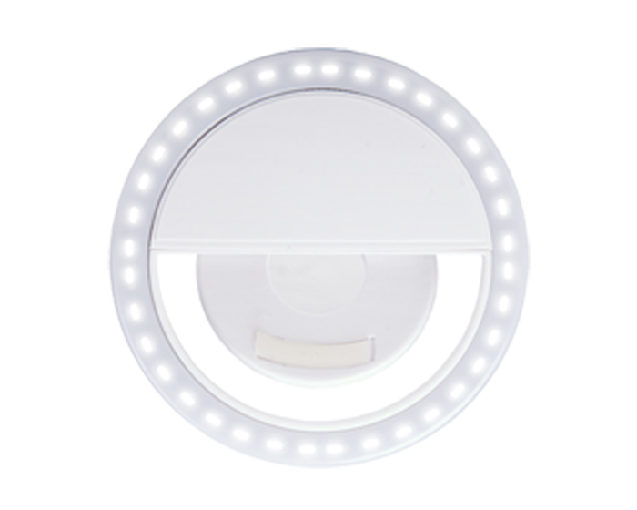 Aro de luz LED para tomar selfis. Cuenta con 3 variaciones de luz. Brinda aproximadamente 60 minutos de luz continua. Incluye cable de carga USB. Presentación: caja en color blanco.