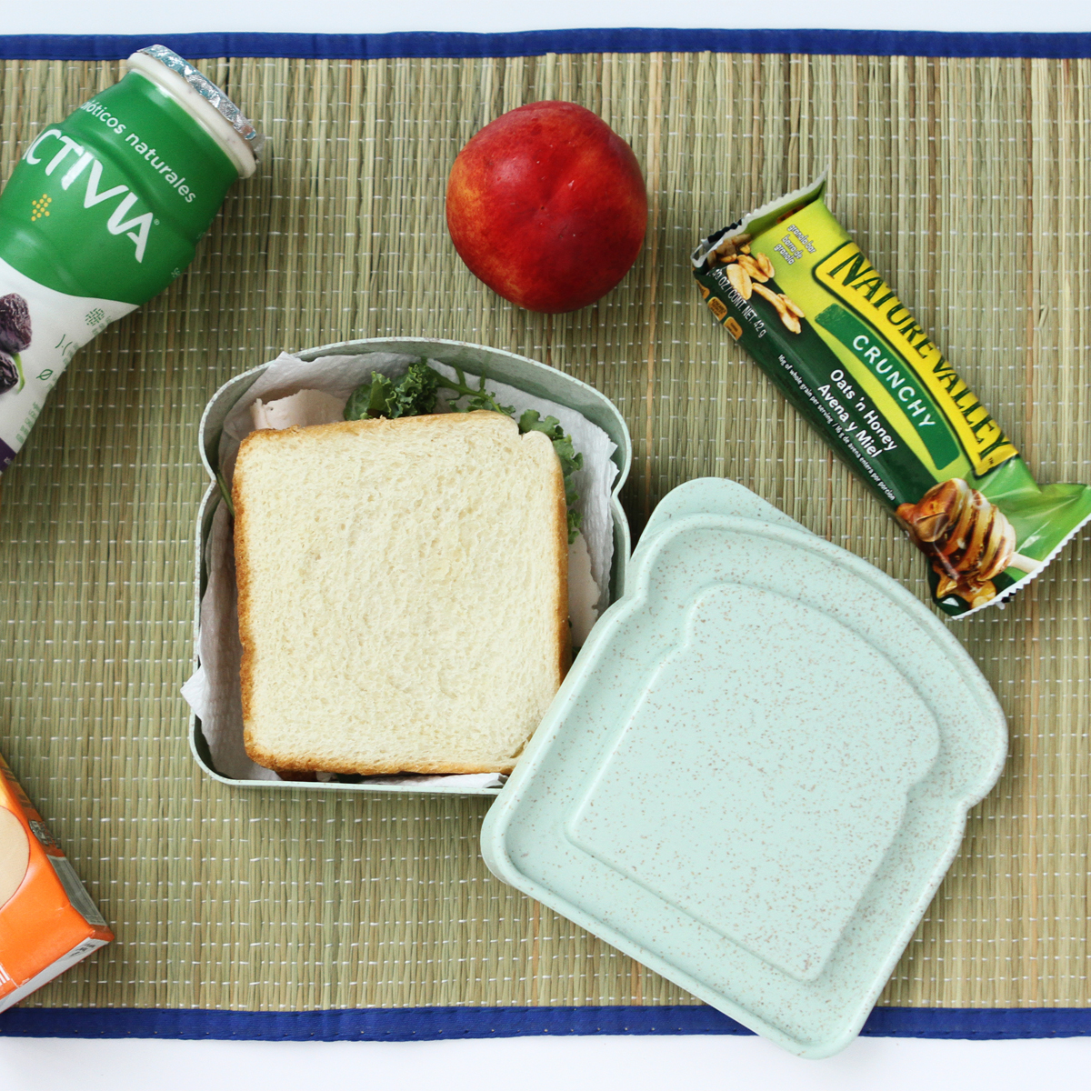 Porta sandwich con tapa fabricado en Fibra de trigo + PP (Polipropileno). Increíble opción para llevar tus alimentos frescos y en buen estado.