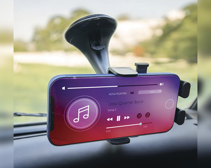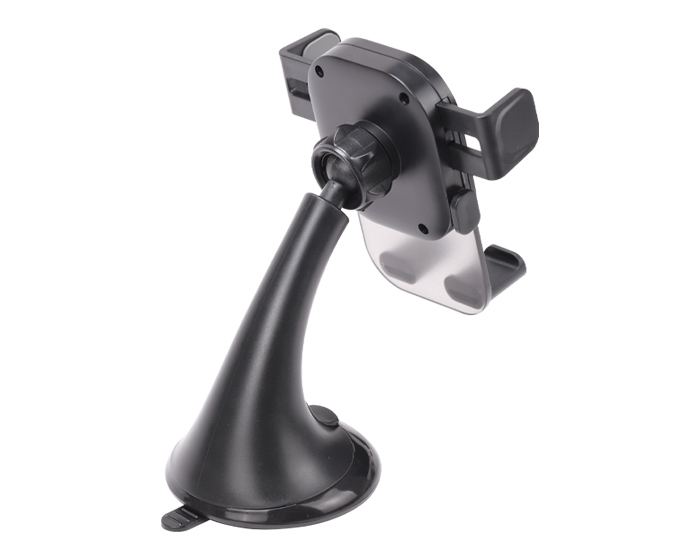 Soporte para celular ajustable ideal para automóvil con cabezal de rotación 360°, cuenta con perilla para armar, rejillas ajustables con gomas antiderrapantes, abrazaderas y seguro de bloqueo con ventosa en la parte de la base para sujetar en tableros y parabrisas. Presentación: Caja en color blanco.