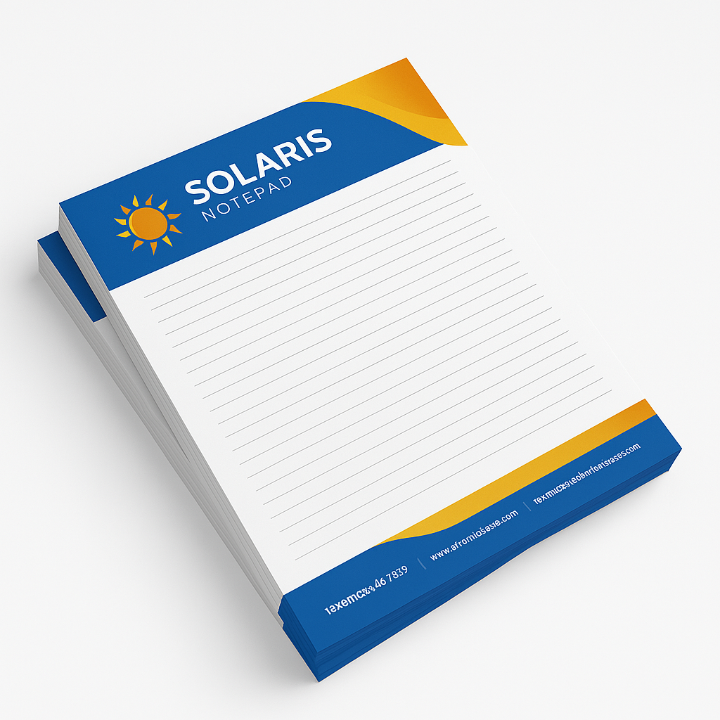 Un block de notas, Cada block contiene 50 hojas impresas por un lado. Impresos en Bond Blanco de 90g., A partir de 50 blocks con 50 hojas, A todo color o en escala de grises (negro)., Pueden ser blancos, rayados o cuadriculados. No Incluye diseño el cliente debe proporcionar arte al tamaño con rebases y marcas de corte en formato de diseño PDF